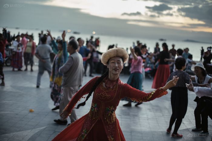 海月广场跳舞的老人