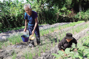 临高县兰罗村委会和兴村的王文书、王爱萍夫妇年龄之和已有207岁,但两个人还能独立起居,经常自己生火做饭。记者进门时,耳灵的王文书竟然一骨碌从床上起身,动作如年轻人般灵活。两人的精神状态不错,平常会用收音机听听临高戏。老两口种了一辈子的地,现在还保持着每天打扫门前卫生的劳作习惯。“他们习惯干活了,90岁时还能犁田。”孙子王图秀介绍。